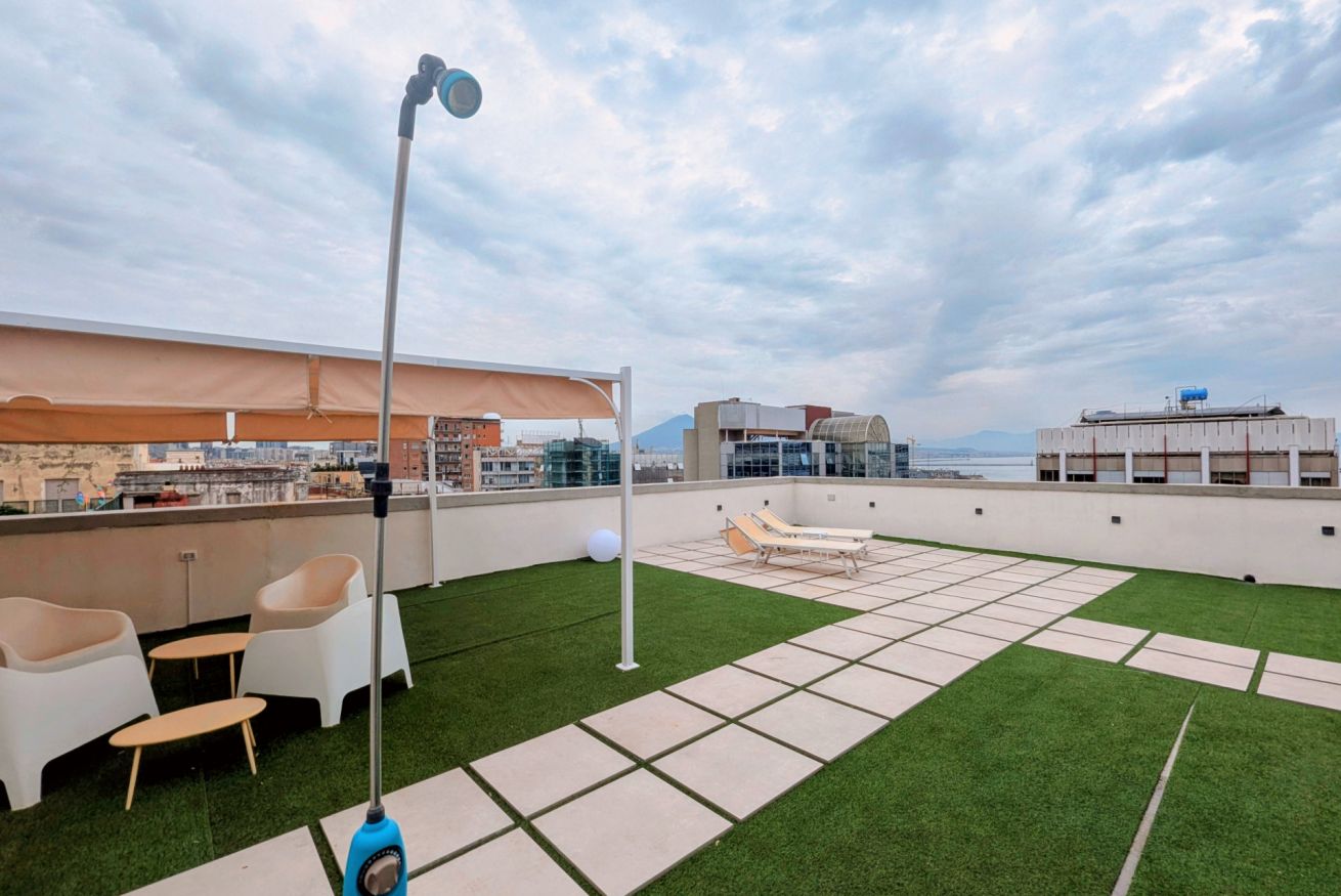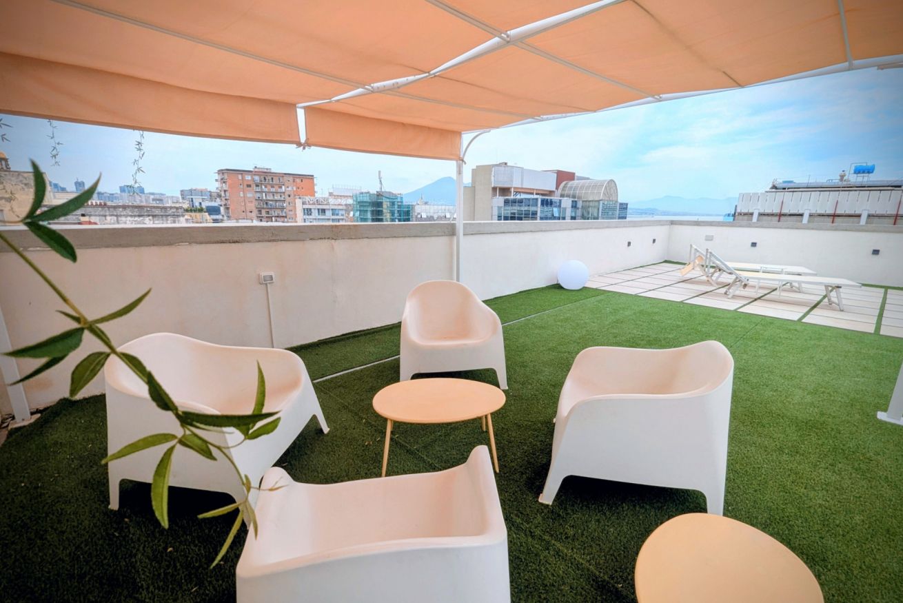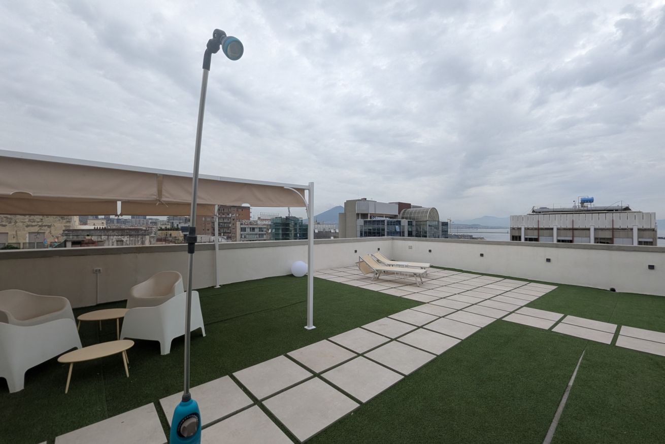E poi c’è lei, la nostra terrazza panoramica: il cuore pulsante del soggiorno. Un luogo speciale dove il tempo sembra rallentare, il sole accarezza dolcemente la pelle, e lo sguardo si perde tra l’azzurro del golfo, la maestosità del Vesuvio e lo skyline unico di Napoli. Che sia per un aperitivo al tramonto o un attimo di relax tra cielo e mare, qui ogni emozione trova il suo spazio.