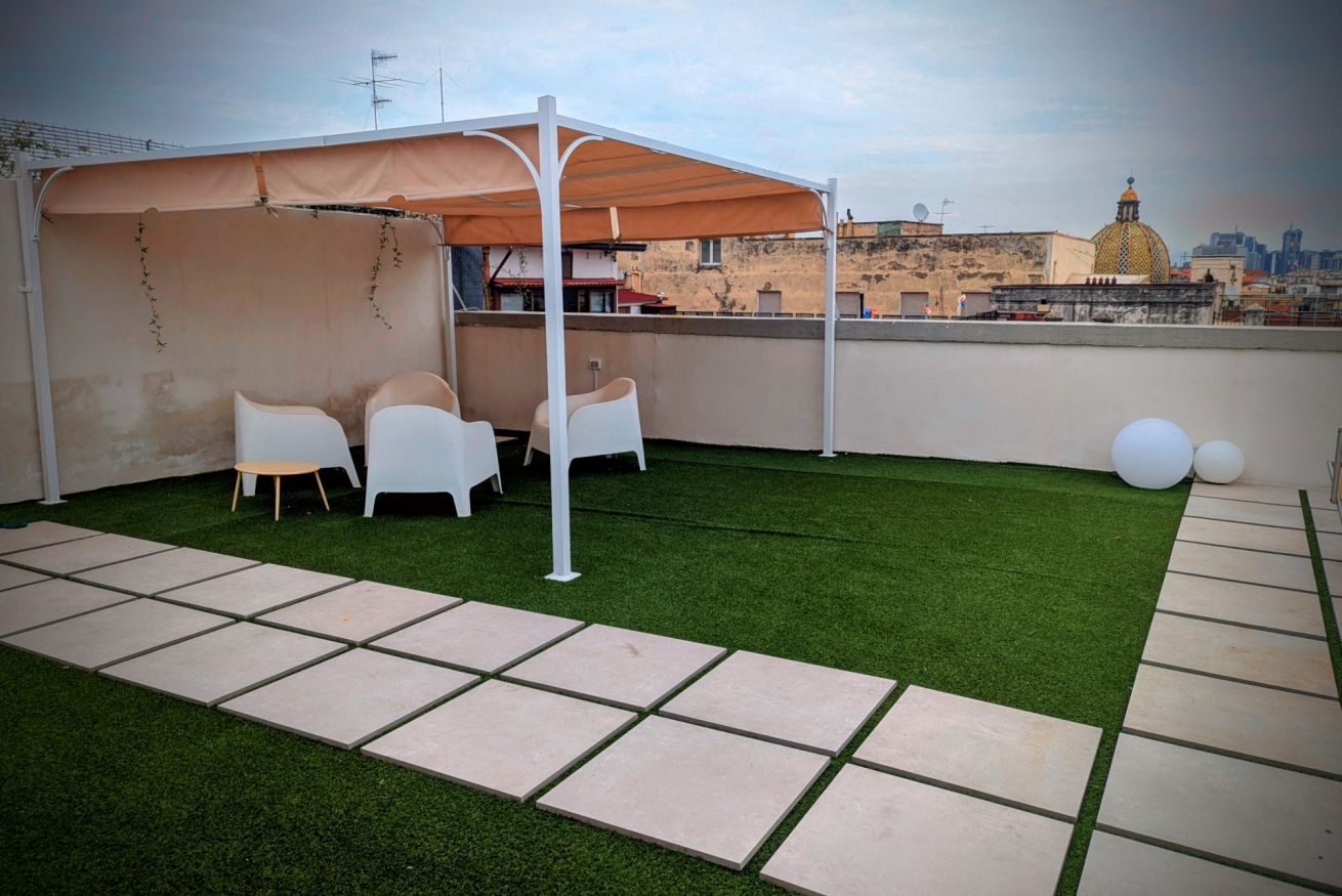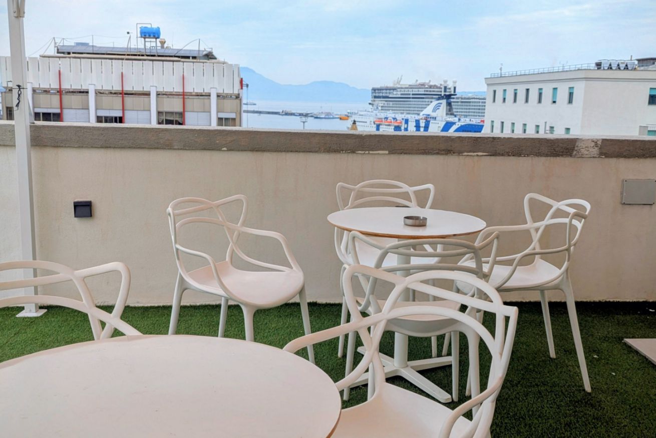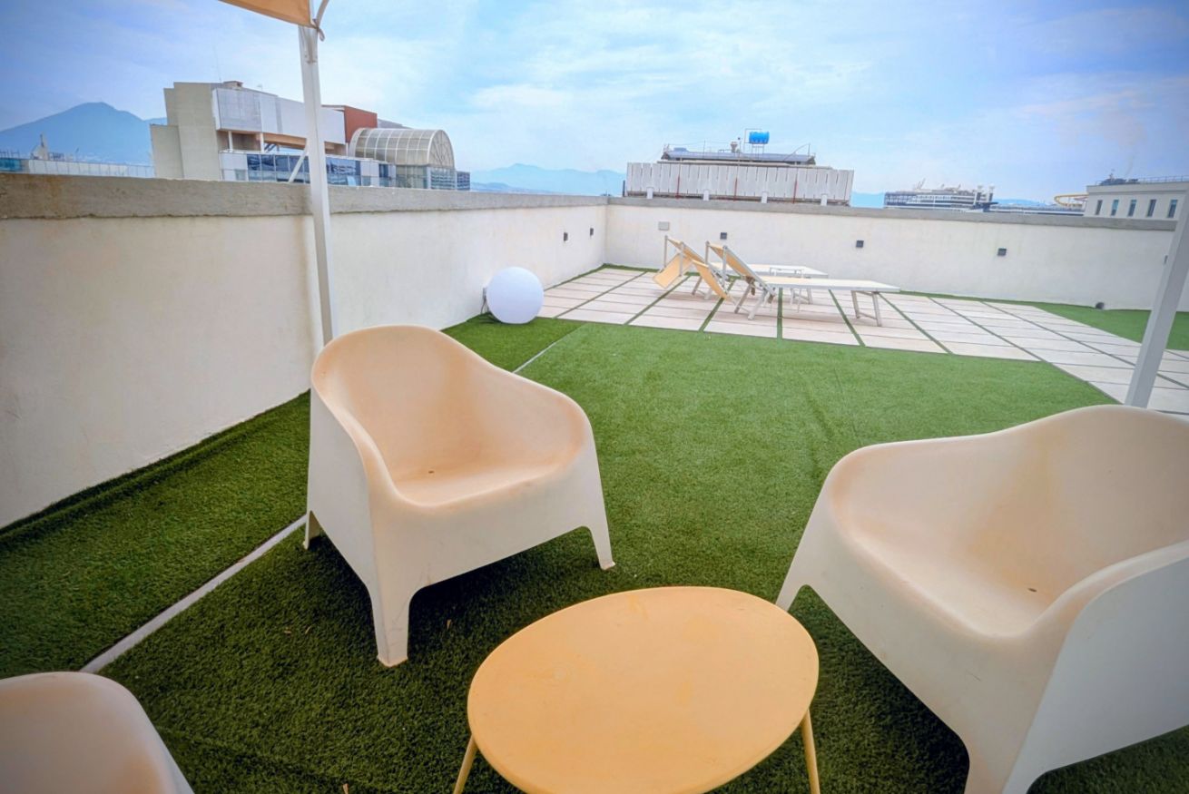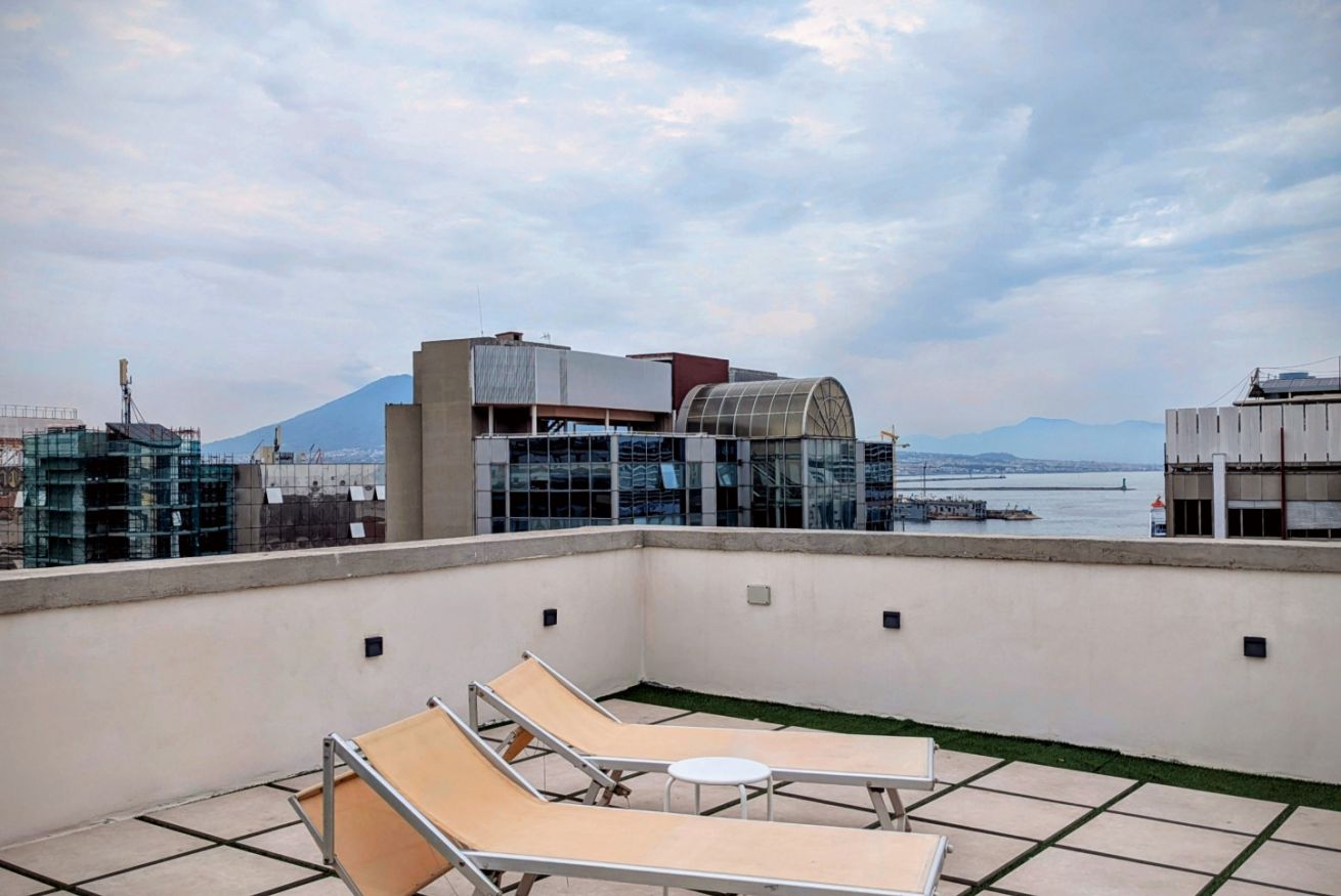 E poi c’è lei, la nostra terrazza panoramica: il cuore pulsante del soggiorno. Un luogo speciale dove il tempo sembra rallentare, il sole accarezza dolcemente la pelle, e lo sguardo si perde tra l’azzurro del golfo, la maestosità del Vesuvio e lo skyline unico di Napoli. Che sia per un aperitivo al tramonto o un attimo di relax tra cielo e mare, qui ogni emozione trova il suo spazio.